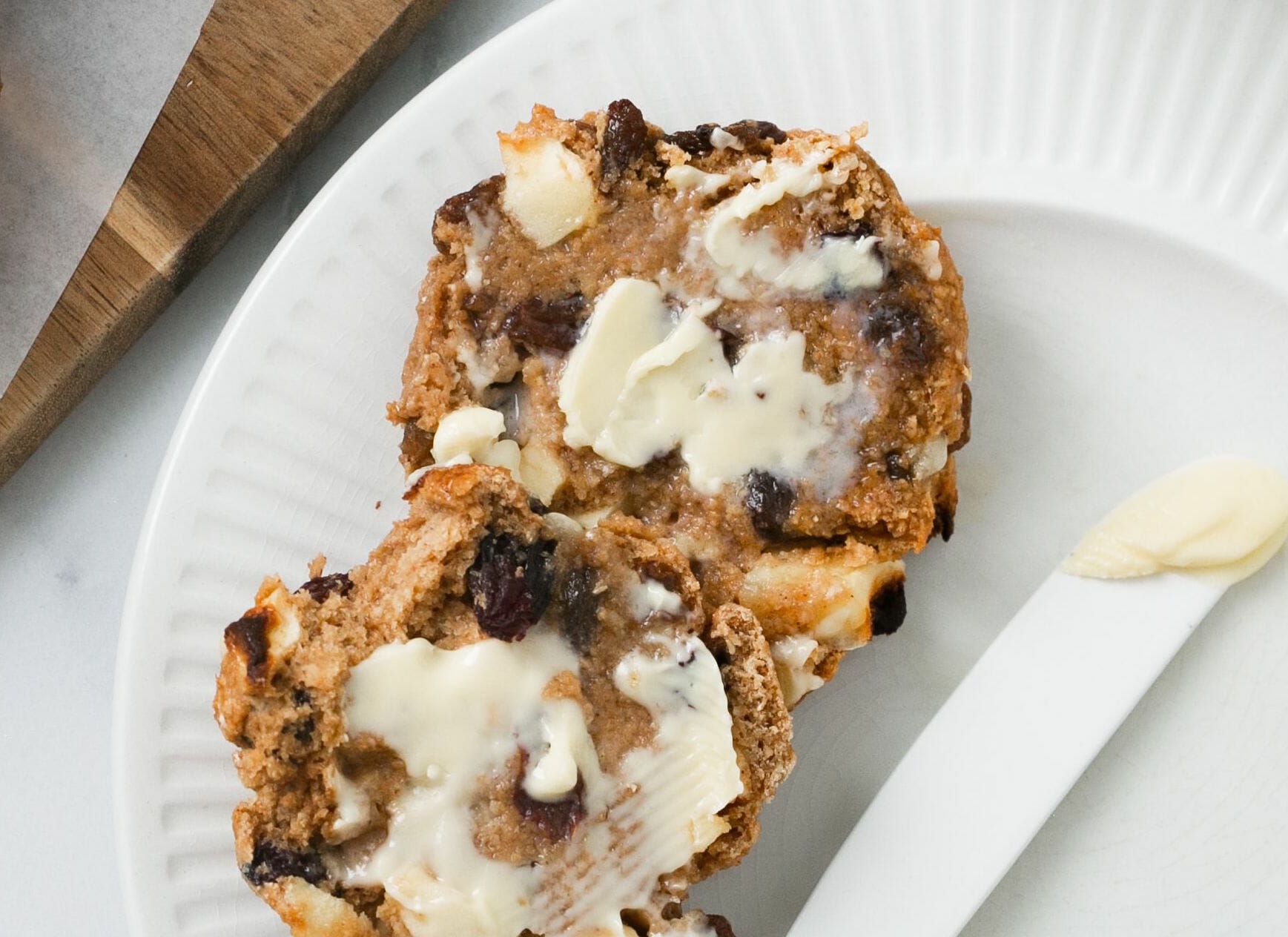 This recipe calls for wholemeal flour and is enriched with Greek yoghurt and naturally sweetened with dried fruit and coconut sugar. As they contain no yeast they are quick and easy to make and will fill the house with beautiful aromas of sweet spices.
