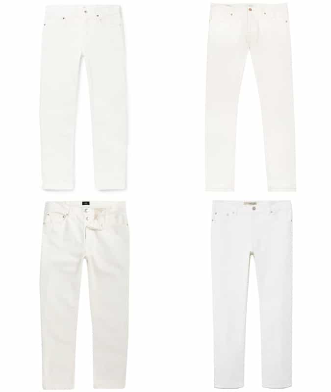 For styling tips, look the coast of southern Europe. Classic denim is the worker’s uniform; white jeans are worn by the guy who owns the company (and needn’t risk dirtying them up). So even you don’t have a yacht in the harbour, embrace the Riviera aesthetic by combining with easygoing footwear and a darker shade to add some contrast up top.