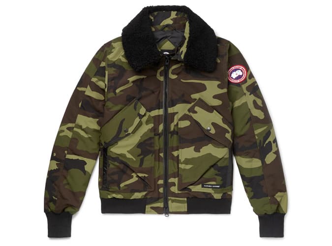Coming in a subdued grey-green mix, Zara ’s camo bomber is for the simple-but-purposeful dresser. With a stand-up buttoned collar, front pockets and zip-up fastening, this Zara classic would work as well with a block color underneath as it would zipped up with a plain Oxford shirt peeking out of the brim. Buy Now: